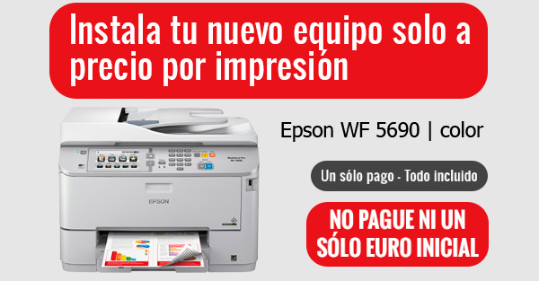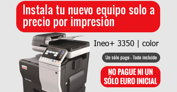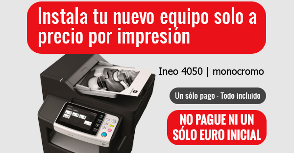 CAMBIE SUS EQUIPOS PAGANDO SOLO POR LO QUE IMPRIMA Desembolso inicial 0€ Pagara solo por lo que imprima Ahorrara controlando sus costes mensuales de impresión Todo incluido. El pago de sus impresiones incluye: Equipo + Servicio de Mantenimiento -